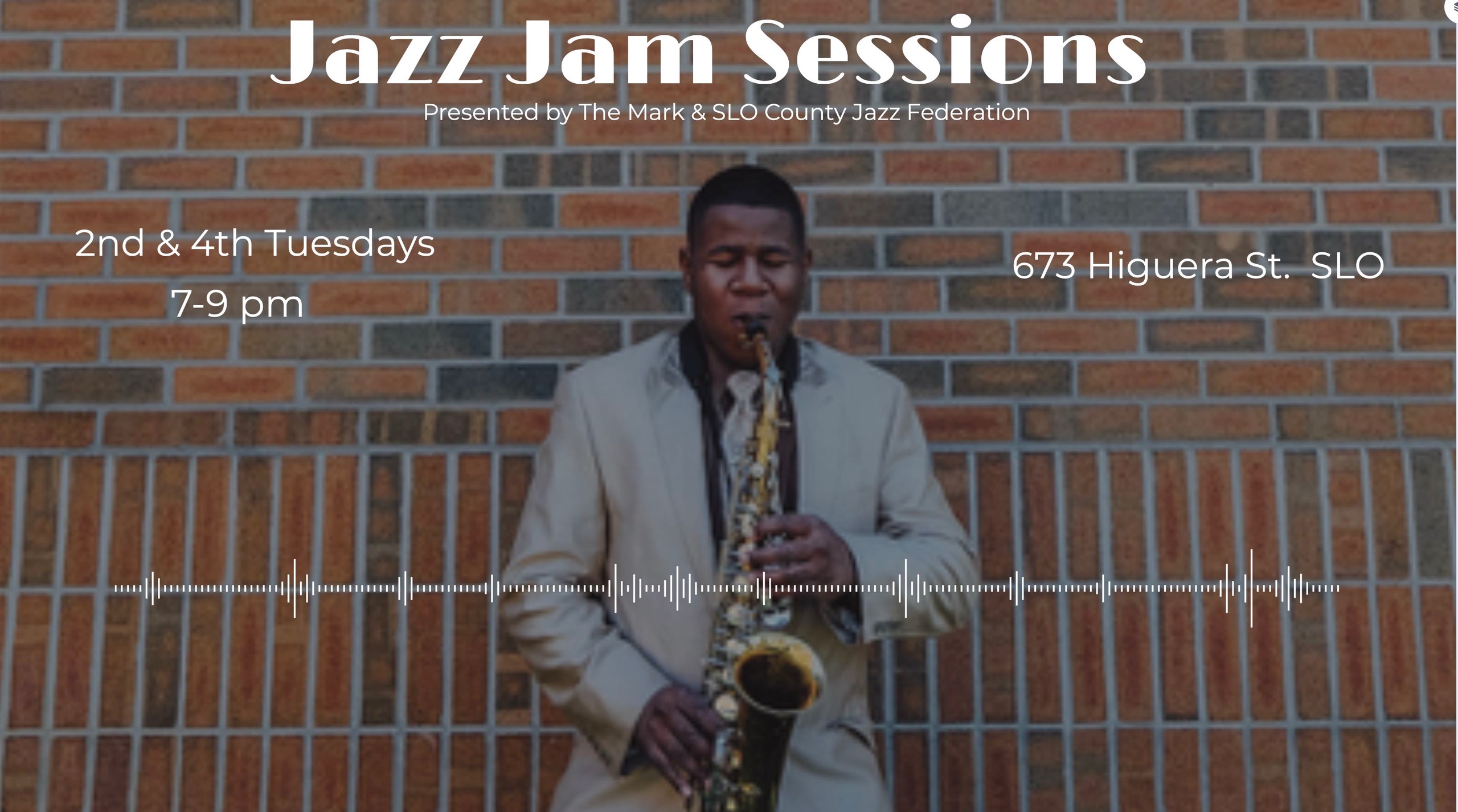 The SLO County Jazz Federation presents regular jazz jam sessions at The Mark (673 Higuera) every 2nd and 4th Tuesday, 7-9 pm. The house rhythm section is Les Rose on saxophone, Craig Updegrove on piano, Ken Hustad on bass and Darrell Voss on drums. All ages are welcome, both players and listeners. Hope you can join us and support the time honored tradition of the jam session. Taco Tuesday special, other food and full bar available for purchase.